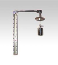 液位計是根據力平衡原理設計的。當液位處于某一高度時浮標重量為W,重錘針重量為W1,浮標浸在液本中所受到的浮力為F,系統摩擦為(。在平衡狀態下:W-F-W1-f=0)當液位上升時,浮力F增大,W、W1、和f均不變,上式平衡破壞,垂指針下滑。直到F力減少到原來值,新的平衡才建立。如F力一直在增大,即液位一直在上長,指針一直下滑。反之,液位下降,則重錘指針上升,以此來指示液位的高度。